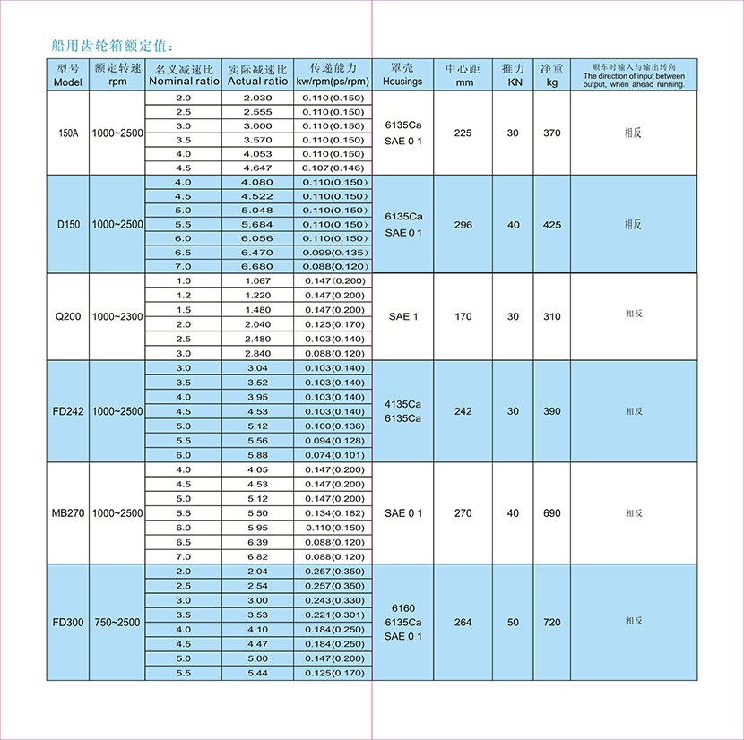 前進名義減速比: | 2 | 輸入轉速: | 1000-2500rpm |