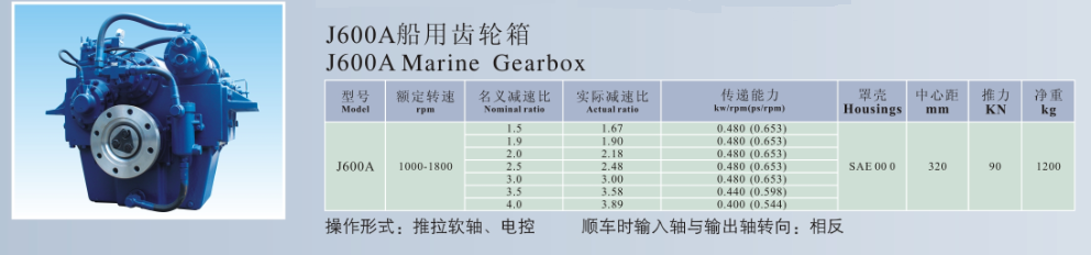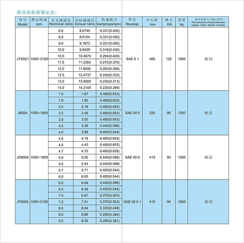前進名義減速比: | 1.5 | 輸入轉速: | 1000-1800rpm |