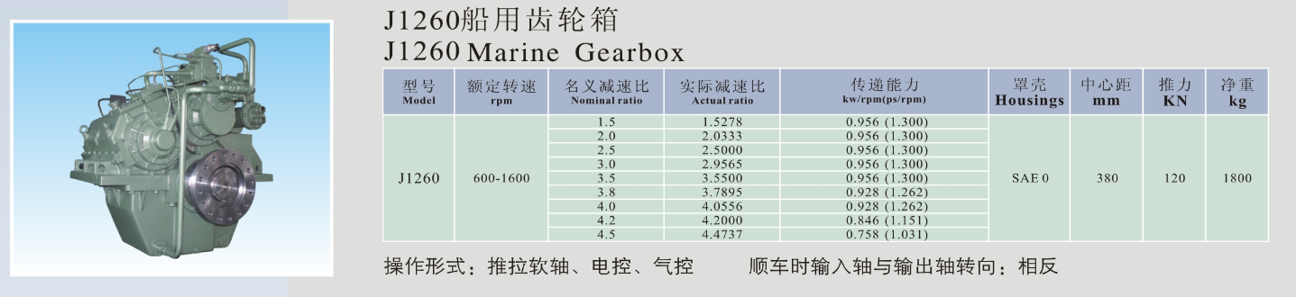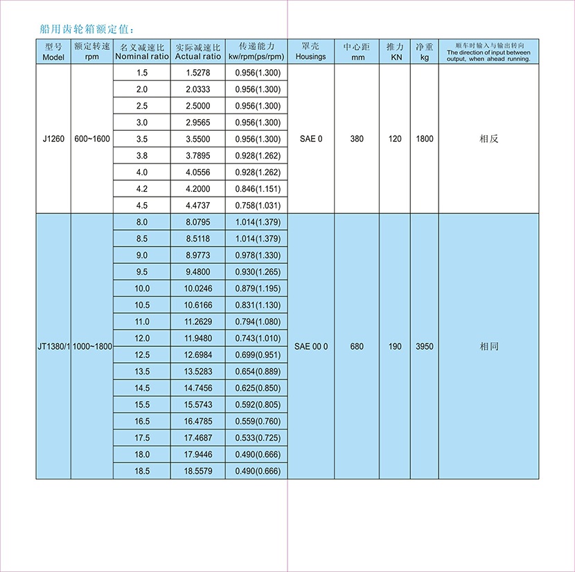 | 前進(jìn)名義減速比: | 1.5 | 輸入轉(zhuǎn)速: | 600-1600rpm |