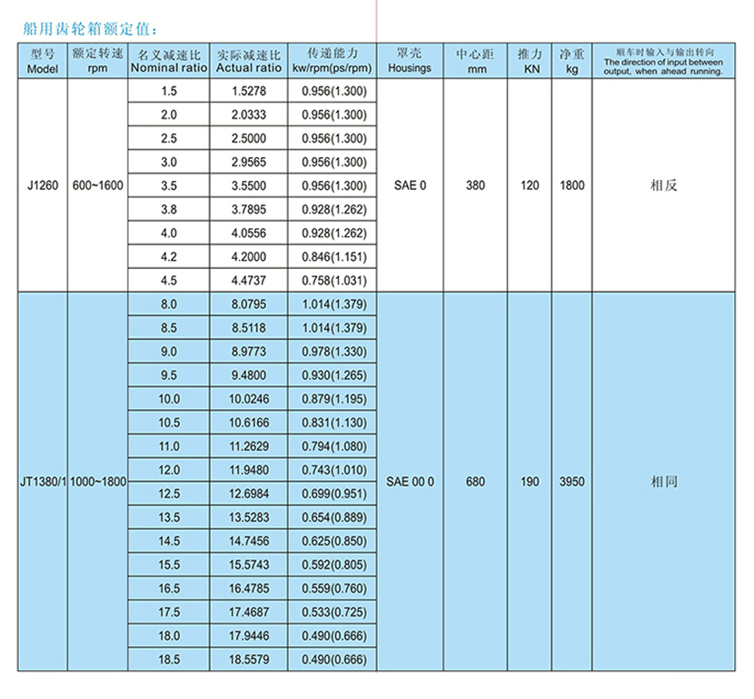 前進名義減速比: | 2 | 輸入轉速: | 600-1600rpm |