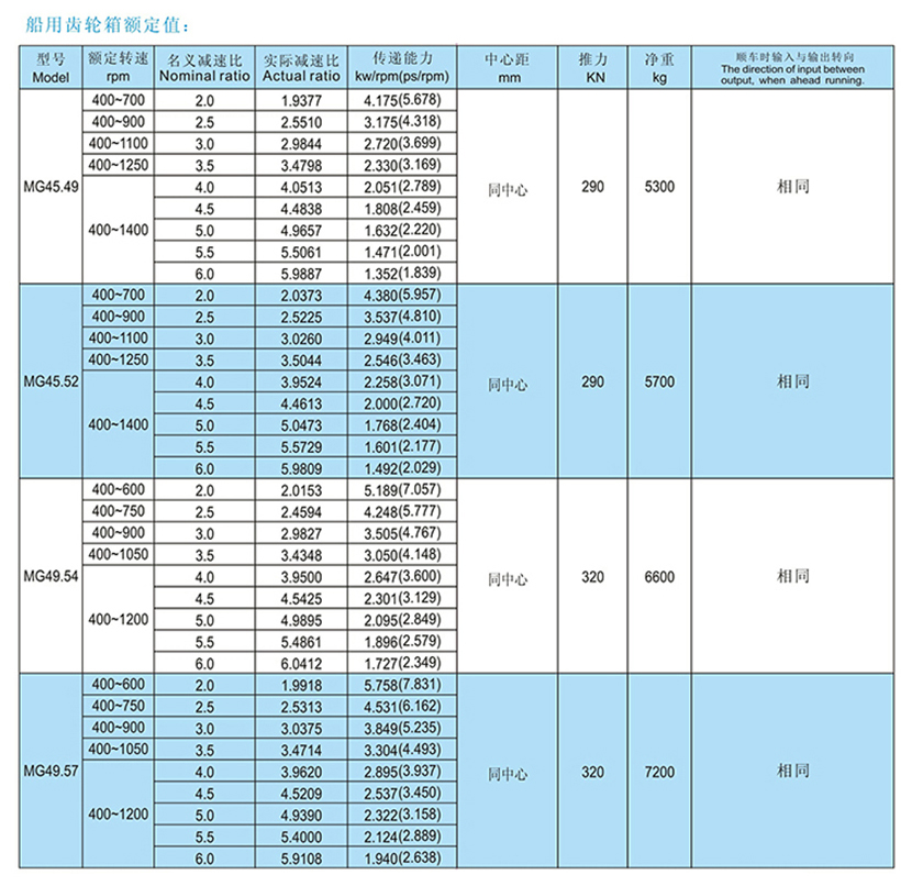 前進(jìn)名義減速比: | 2 | 輸入轉(zhuǎn)速: | 400-600rpm |