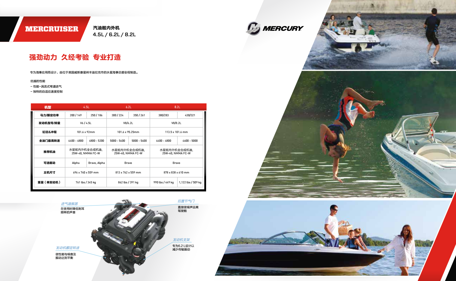 全油門最高轉速: | 4800-5200 | 推薦機油: | 水星舷內外機全合成機油,25W-40,NMMA FC-W |