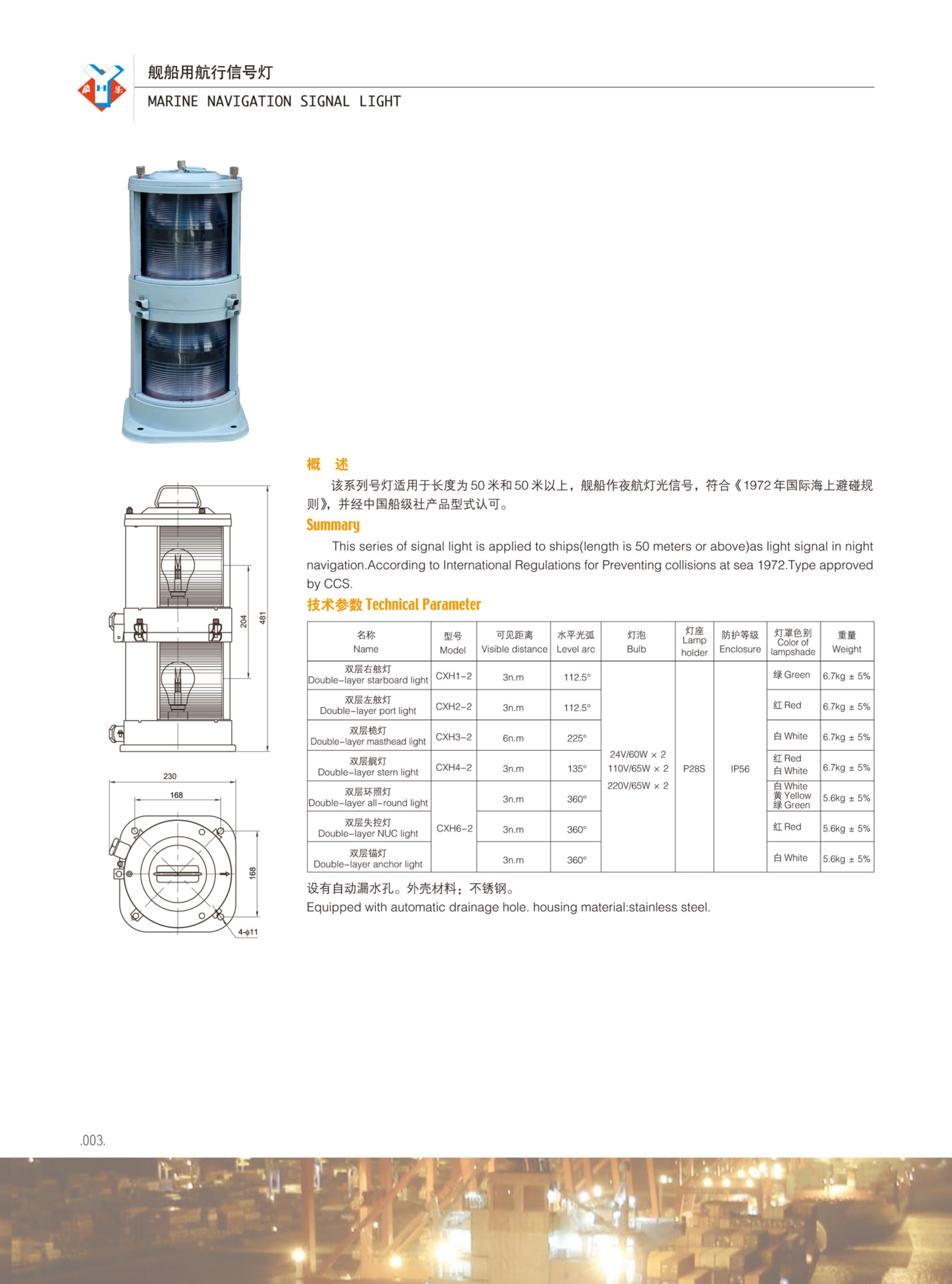 艦船用航行信號燈雙層失控燈 | |||