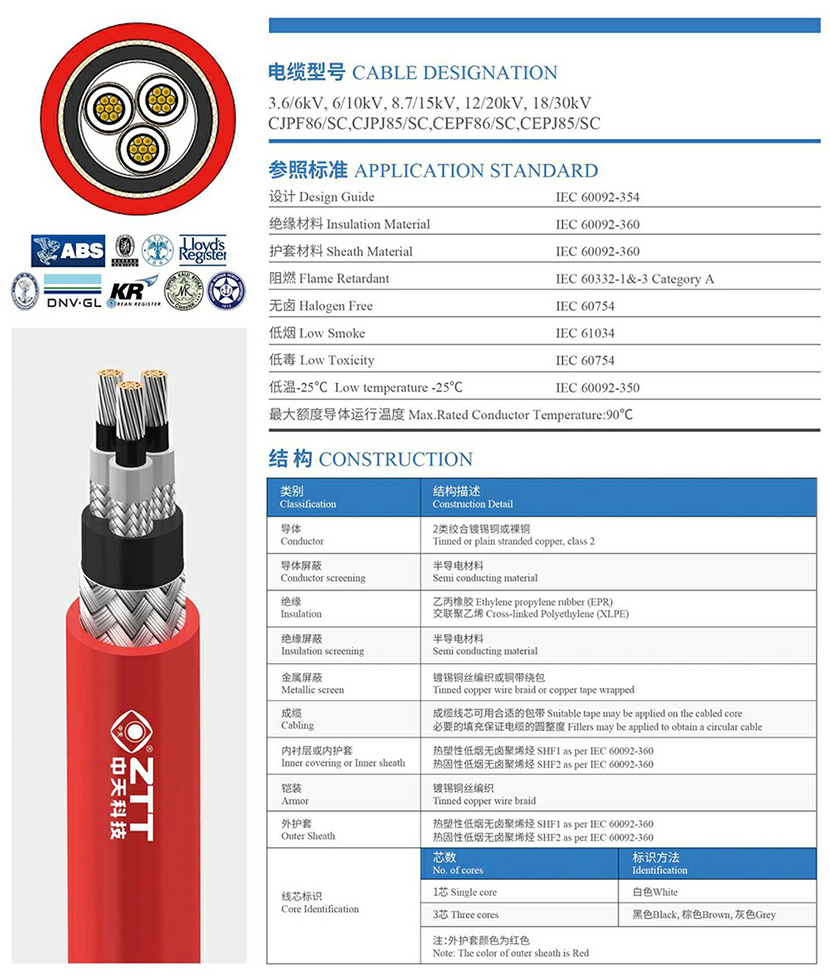 | 類型: | 船用中壓電力電纜 | 名義直徑: | 23.6mm |