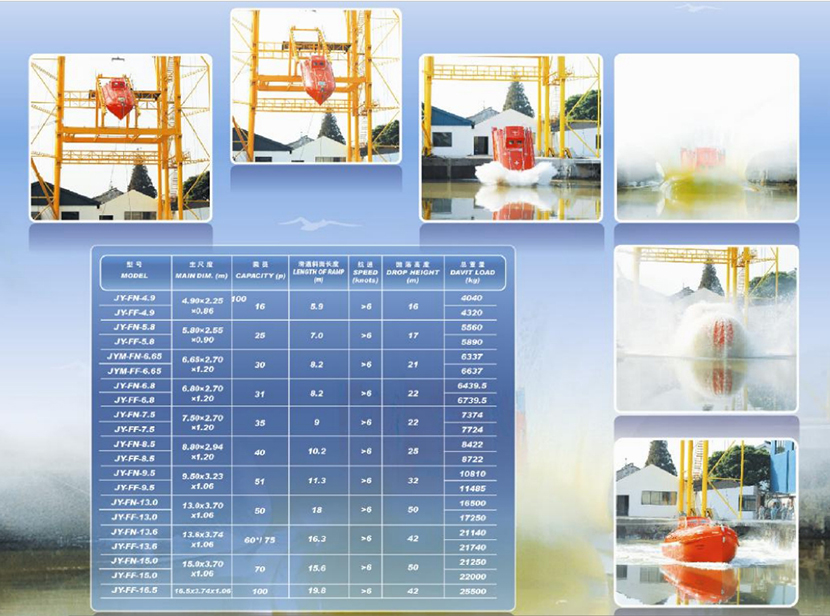 | 4.9米玻璃鋼全封閉式自由降落耐火型救生艇 | |||