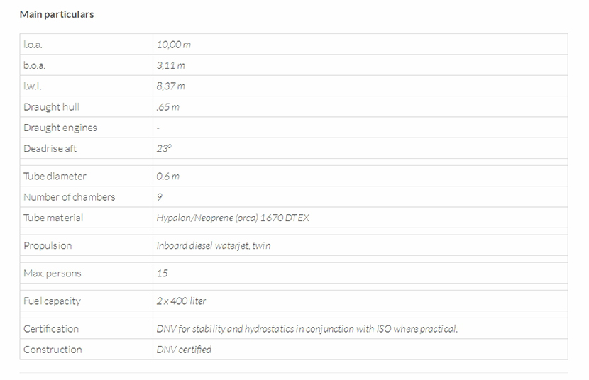 垂線間長: | 8.37m | 推進裝置: | inboard diesel waterjet,twin |
