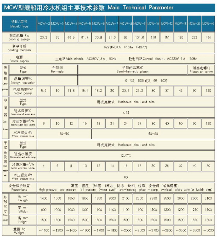冷凝器水壓損失: 30-50kPa 蒸發器型式: 臥式殼管式