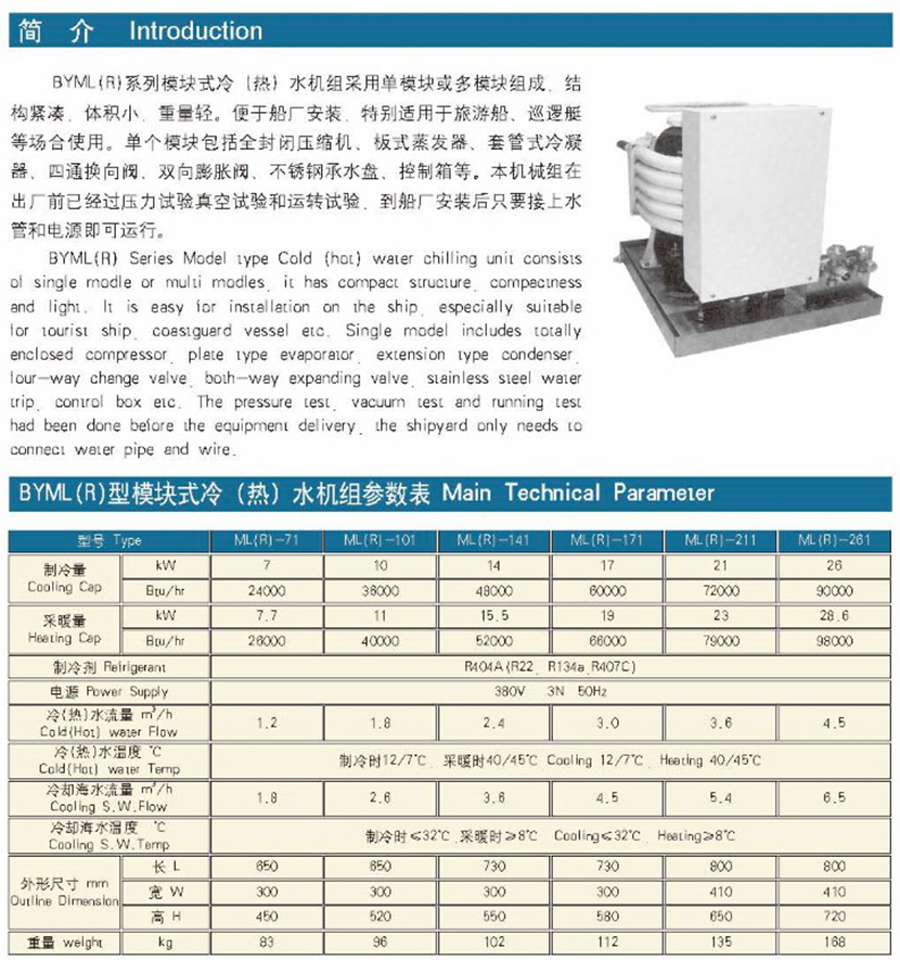 冷卻海水溫度: 制冷時≤32℃,采暖時≥8℃ 重量: 226kg