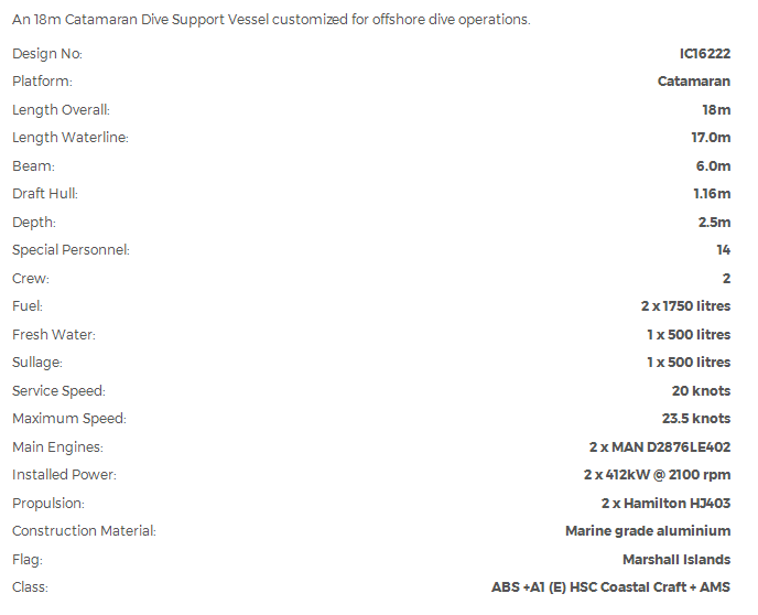 發動機功率: | 2×412kw@2100rpm | 推進裝置: | 2×Hamilton HJ403 |