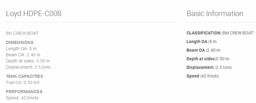 總長: | 8m | 航速: | 42kn |