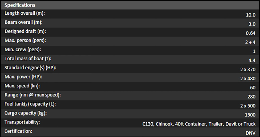 總長(zhǎng): | 10m | 航速: | 60kn |