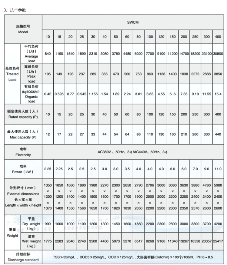 重量(濕重): | 3500kg | 排放指標: | TSS≯35mg/L,BOD5≯25mg/L,COD≯125mg/L,大腸菌群數(Colichin)≯100個/100ml,PH-6~8.5 |