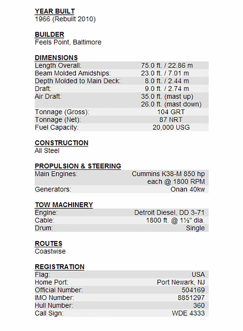 總長: | 22.86m | 發動機功率: | 2×850hp at 1800rpm |