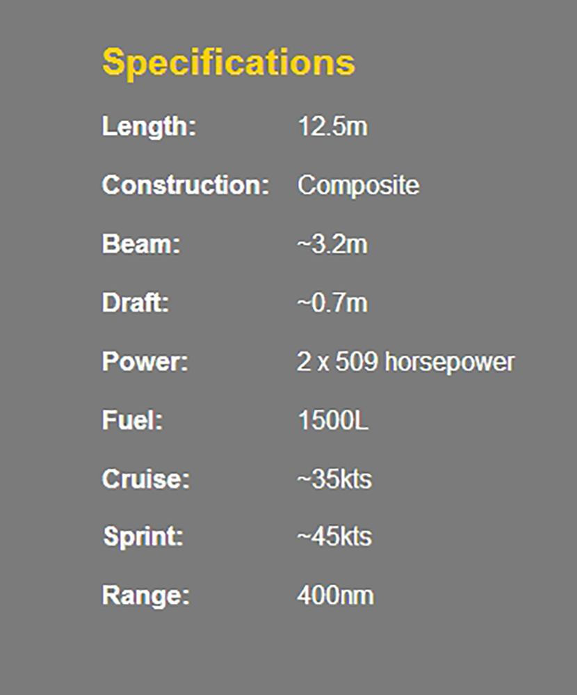 總長(zhǎng): | 12.5m | 航速: | 35kn |