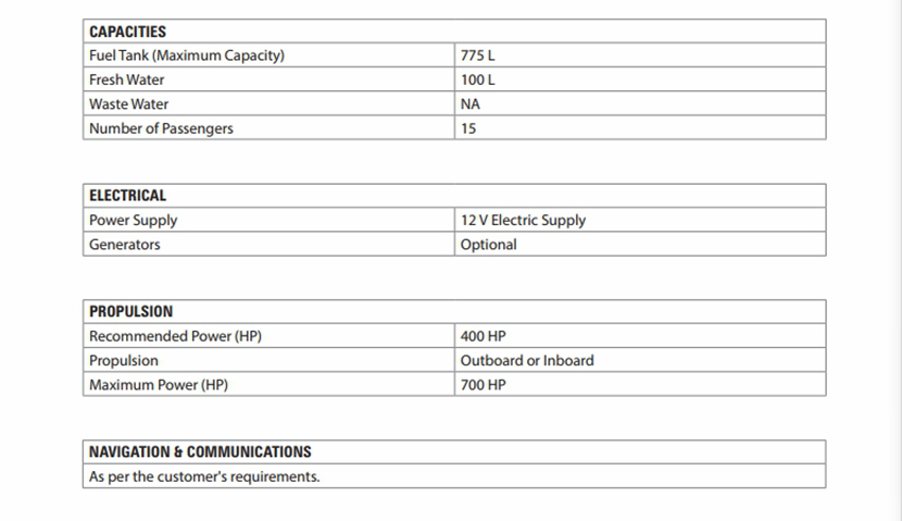 | 燃油容量: | 775L | 推進裝置: | outboard/inboard |