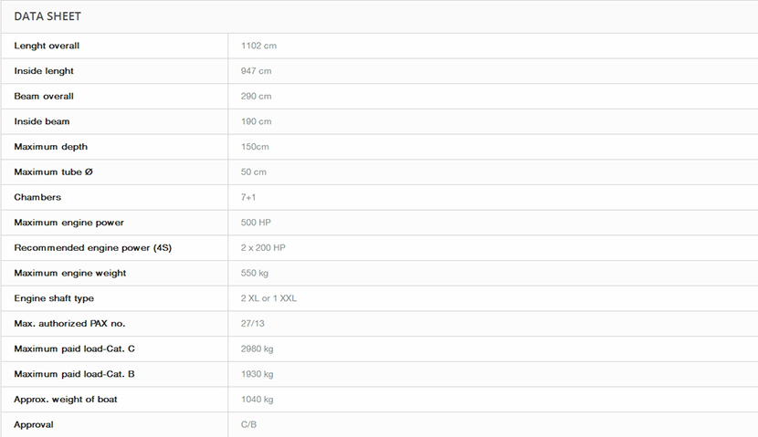 總長: 11.02m 總重量: 1040kg
