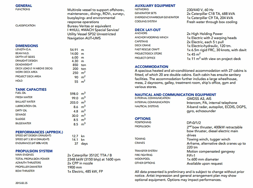 發電機組: | 2×Caterpilar 3512C TTA /B | 發動機功率: | 2348bkW at 1600rpm |