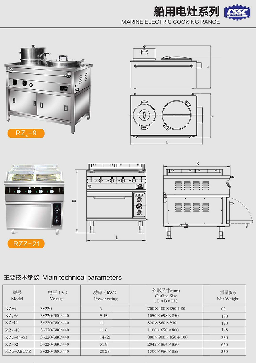 類型: | 船用電灶 | 外形尺寸: | 1050×698×850mm(L×B×H) |
