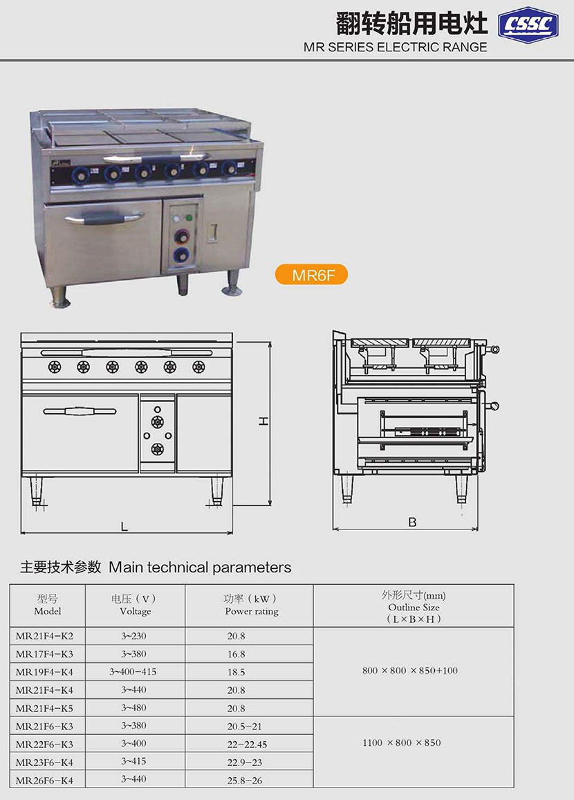 類型: 船用電灶 外形尺寸: 800×800×850+100mm(L×B×H)
