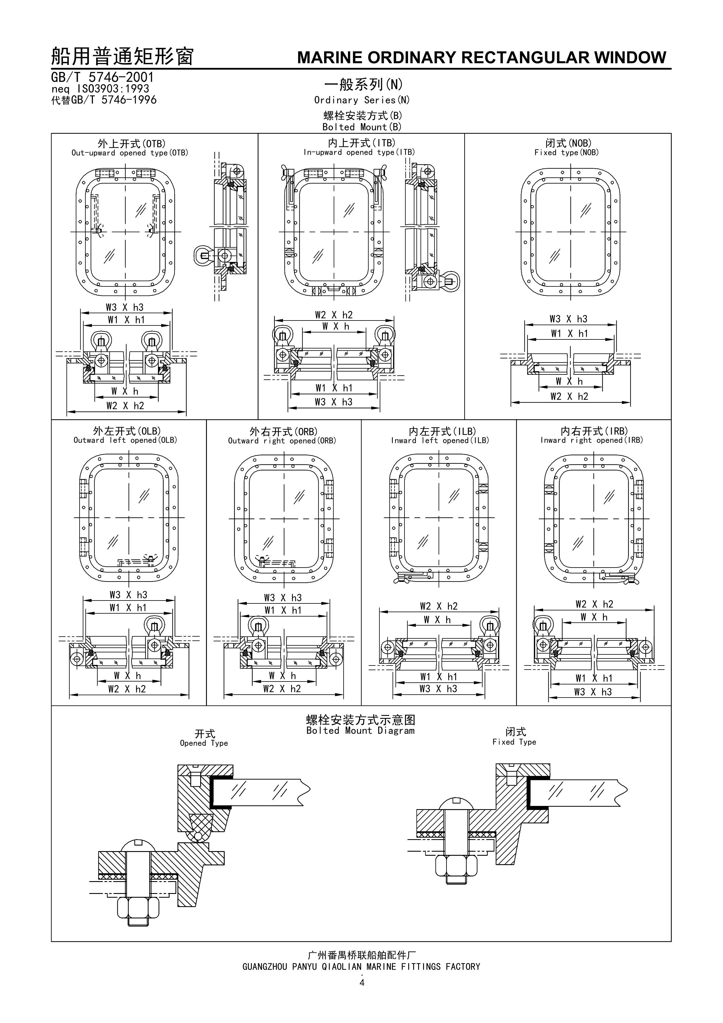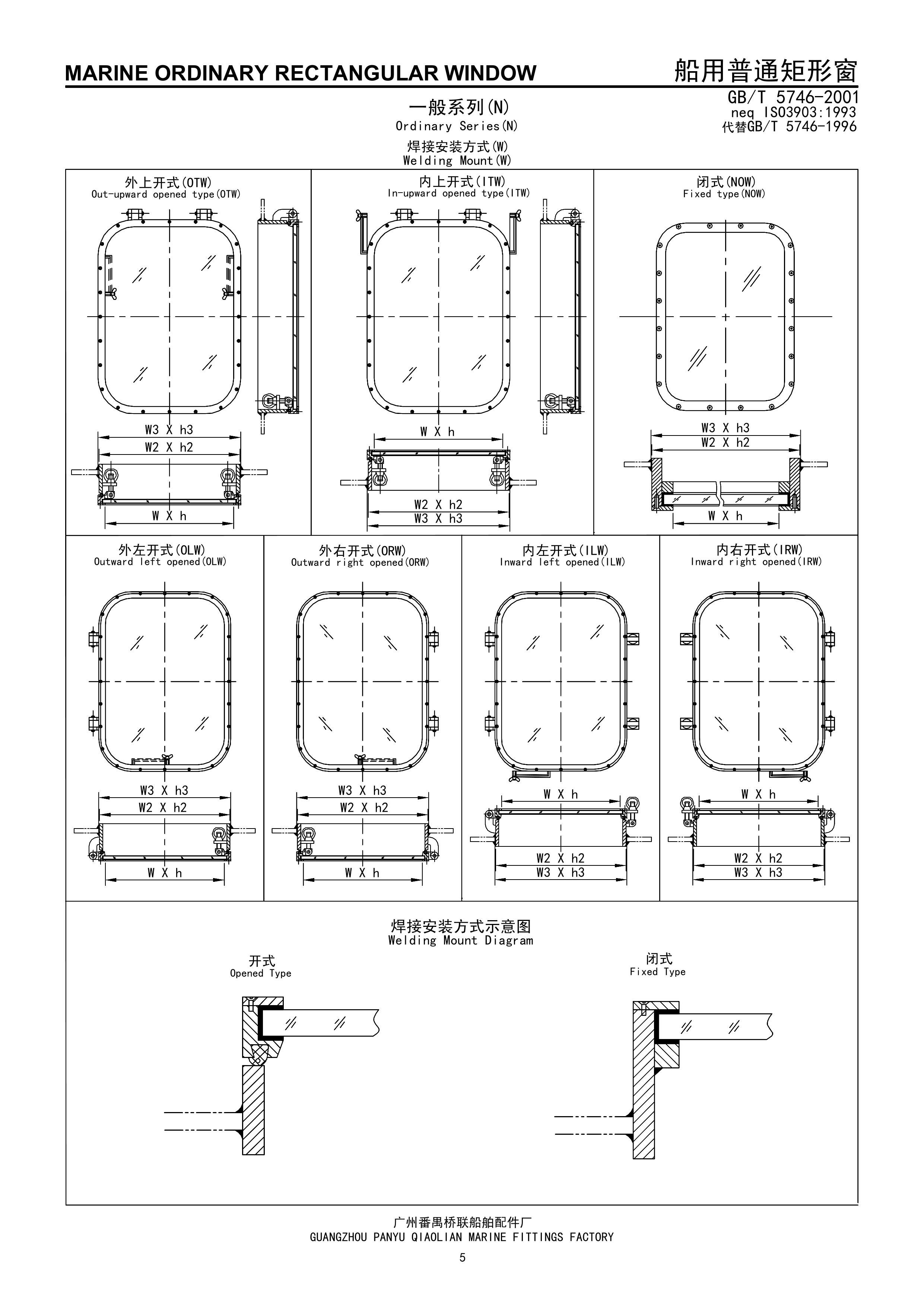 船用焊接安裝式普通矩形窗 | |||