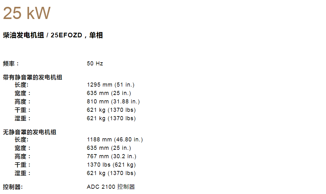 噪音: | 67dB | 柴油機型號: | 25EFOZD |