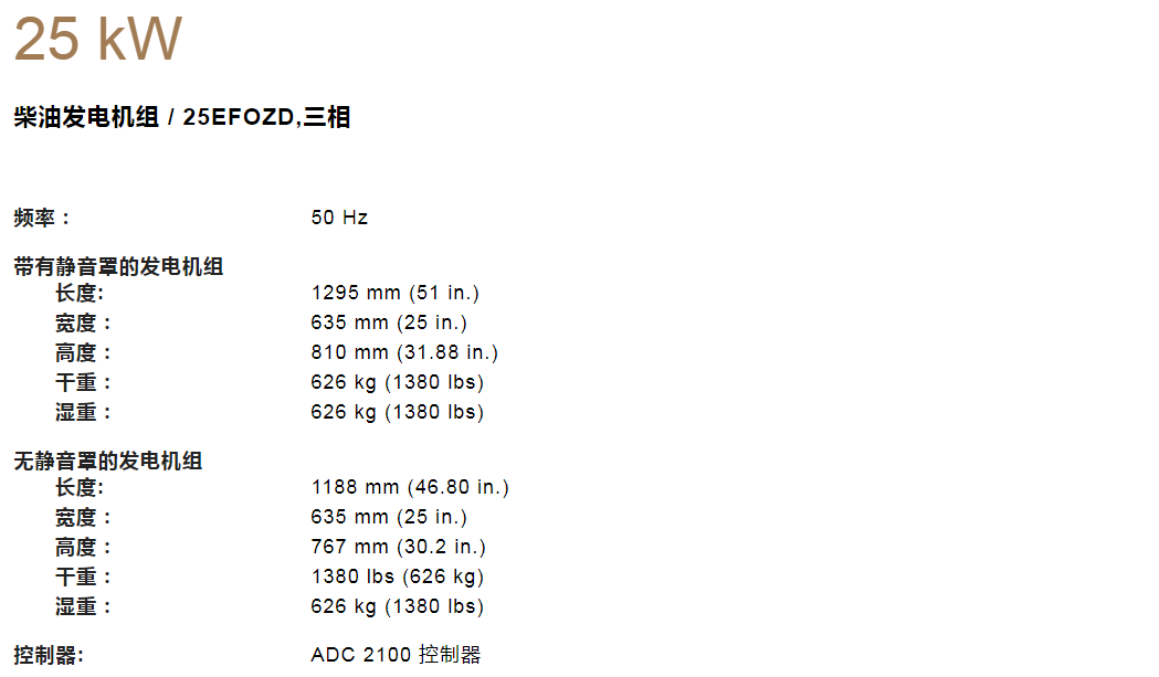 噪音: | 67dB | 柴油機型號: | 25EFOZD |