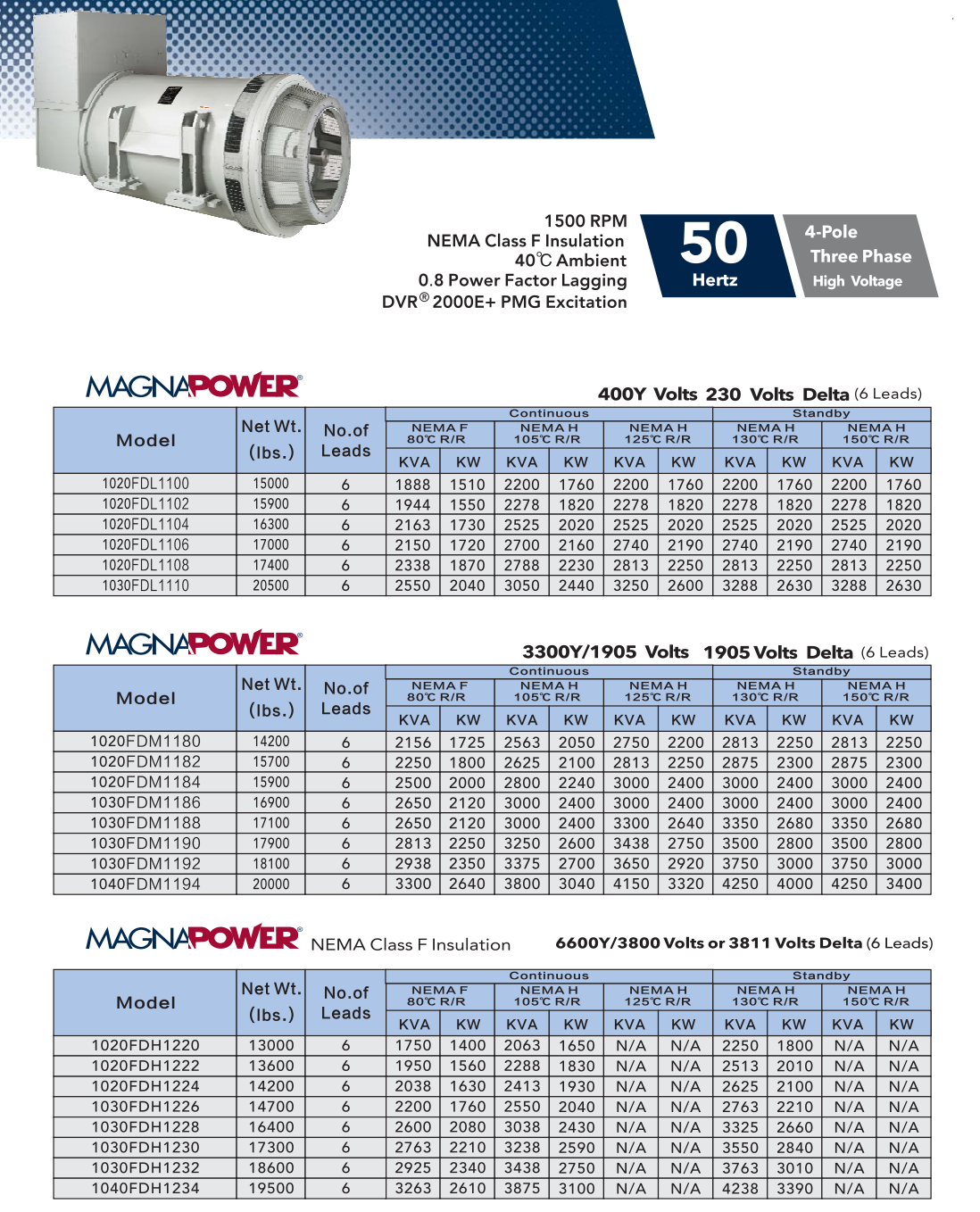 MAGNAPOWER1000無刷三相交流發電機50HZ | |||