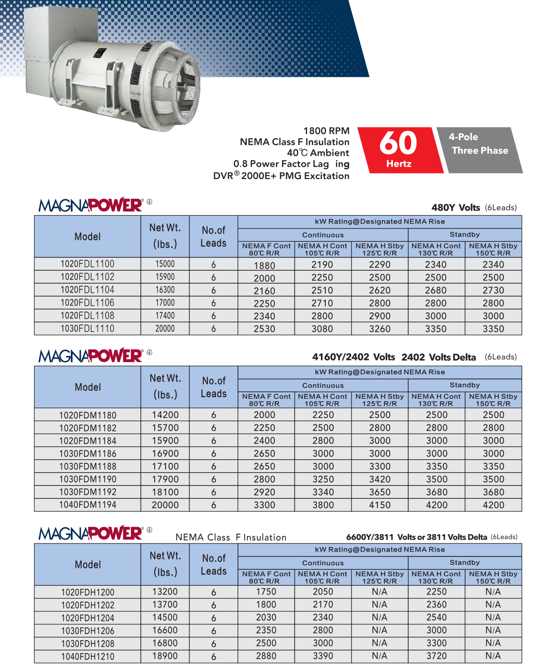 | MAGNAPOWER1000無刷三相交流發(fā)電機(jī)60HZ | |||