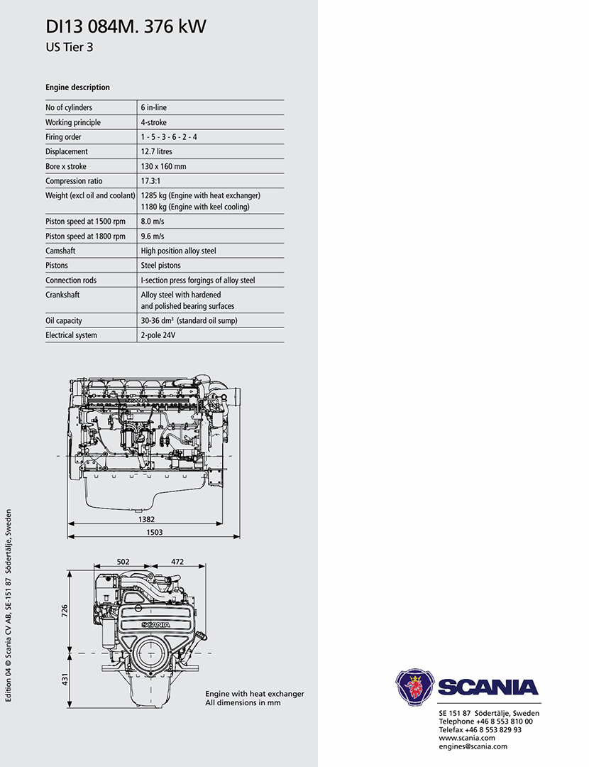 機油容量: | 30-36dm3(standardoilsump) | 排量: | 12.7litres |
