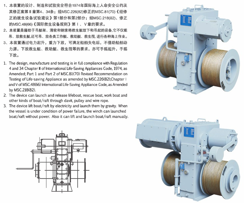 電動救生艇絞車救生兼救助艇絞車