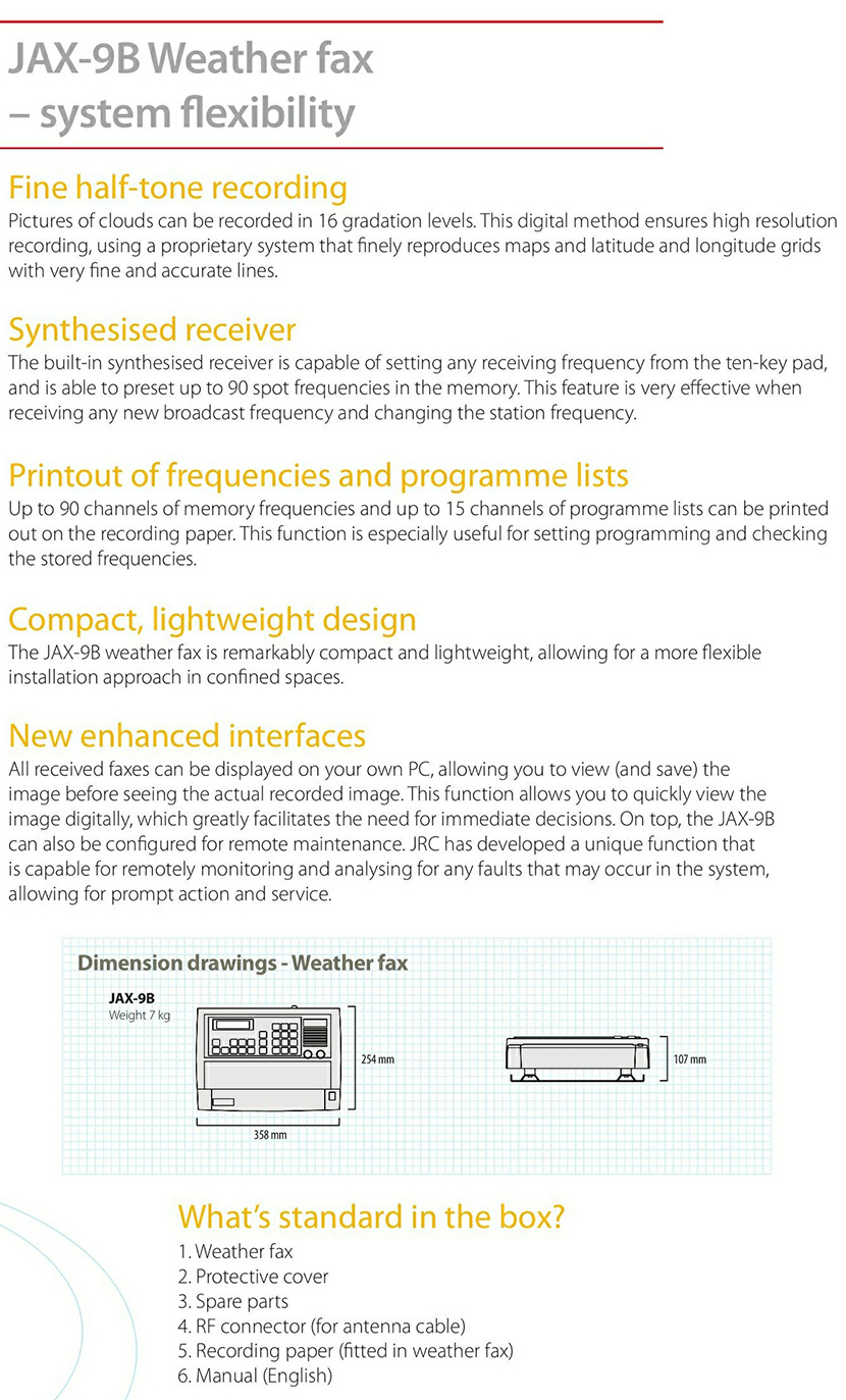 對(duì)比加入個(gè)人收藏加入企業(yè)產(chǎn)品庫![]() 氣象傳真機(jī)JAX-9B?江蘇遠(yuǎn)洋電子科技有限公司More |