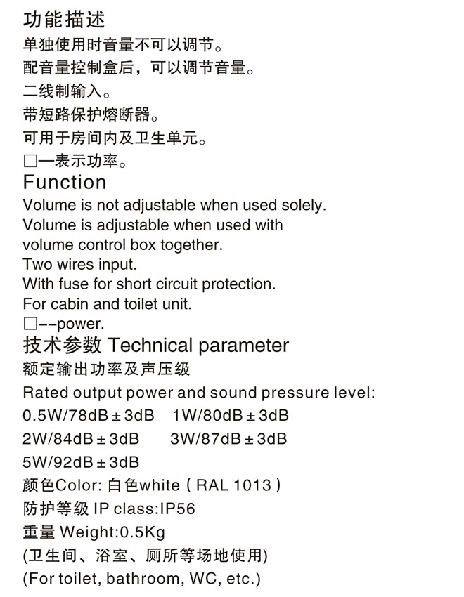功率: | 2W | 聲壓等級: | 84dB |