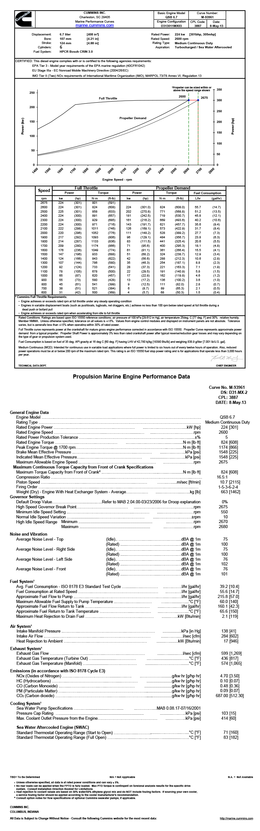 EPA Tier 3-Model year requirements of the EPA marine regulation(40CFR1042);EU Stage IIIa-EC Nonroad Mobile Machinery Directive(2004/26/EC);IMO Tier II(Two)NOx requirements of International Maritime Organization(IMO),MARPOL 73/78 Annex VI,Regulation 13 |