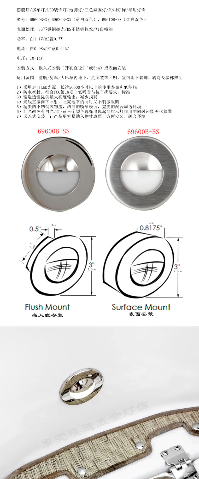 功率: | 1.8W | 安裝方式: | 嵌入式安裝(開孔直徑2‘’或5cm)或表面安裝 |