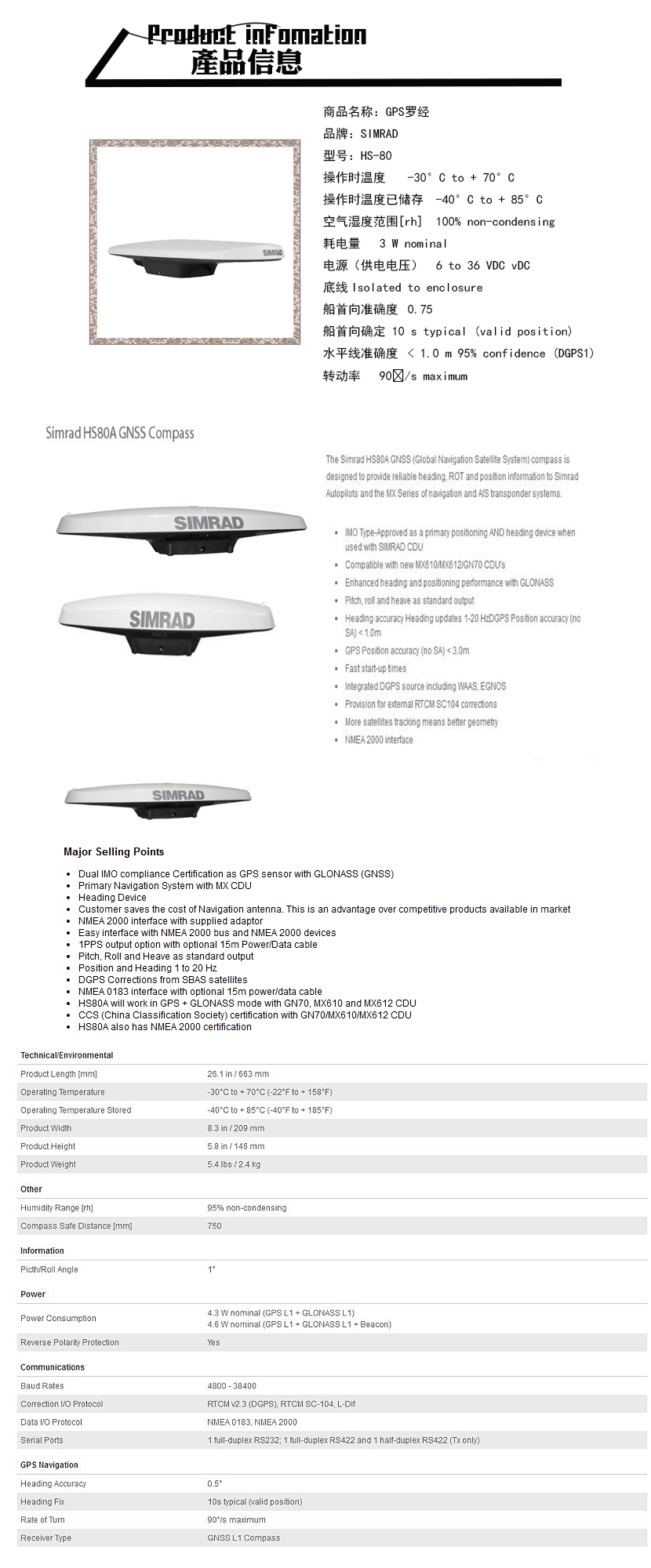 類型: | 電羅經(jīng) | 縱搖角/橫搖角: | 1° |