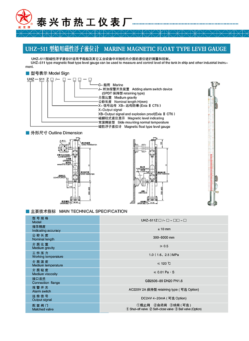 | UHZ-511型船用磁性浮子液位計 | |||