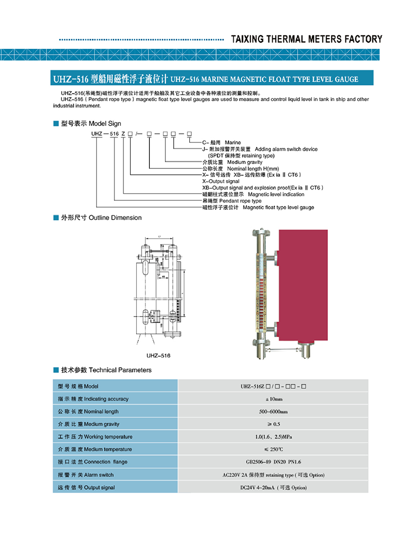 UHZ-516型船用磁性浮子液位計(jì) | |||