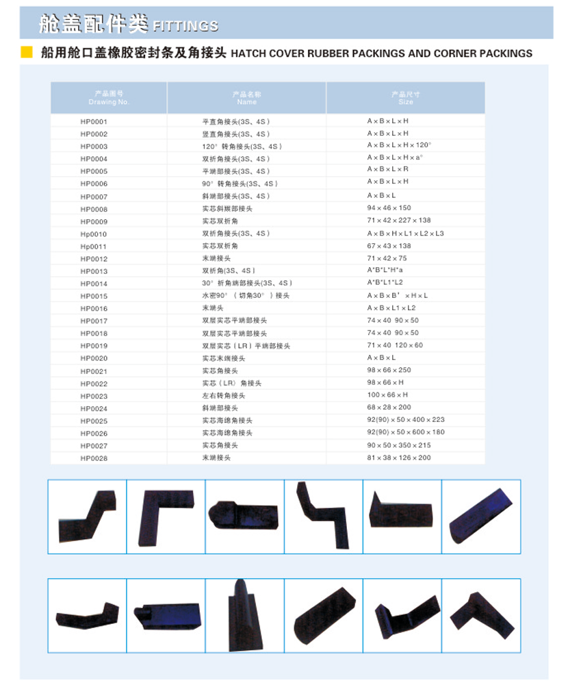 船用艙口蓋橡膠密封條及角接頭 | |||