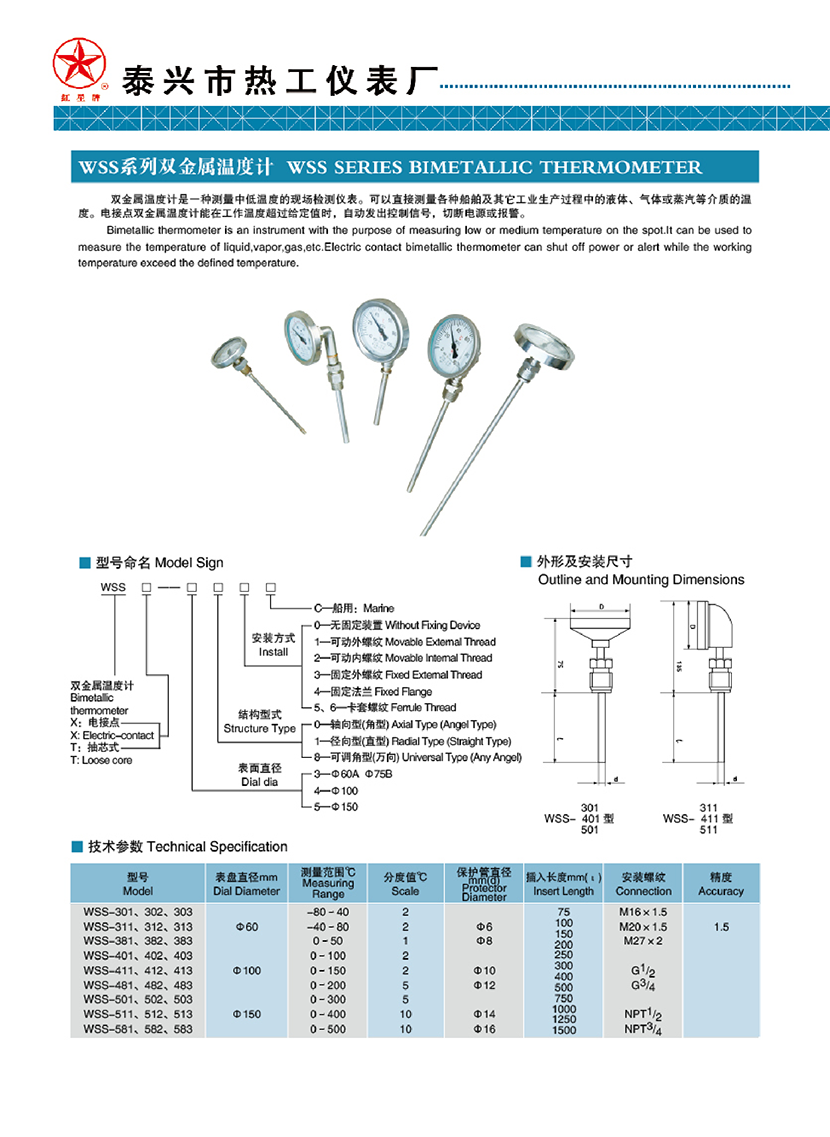 測量范圍: 0~150℃ 直徑: 60/100/150mm
