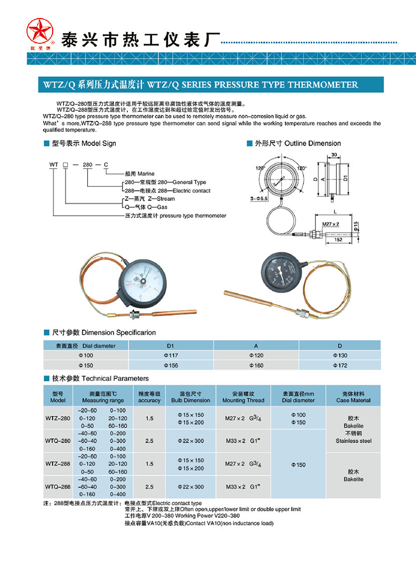 | WTZ/Q系列壓力式溫度計 | |||