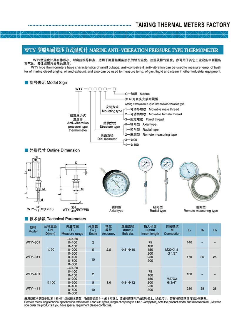 | WTY型船用耐震壓力式溫度計(jì) | |||