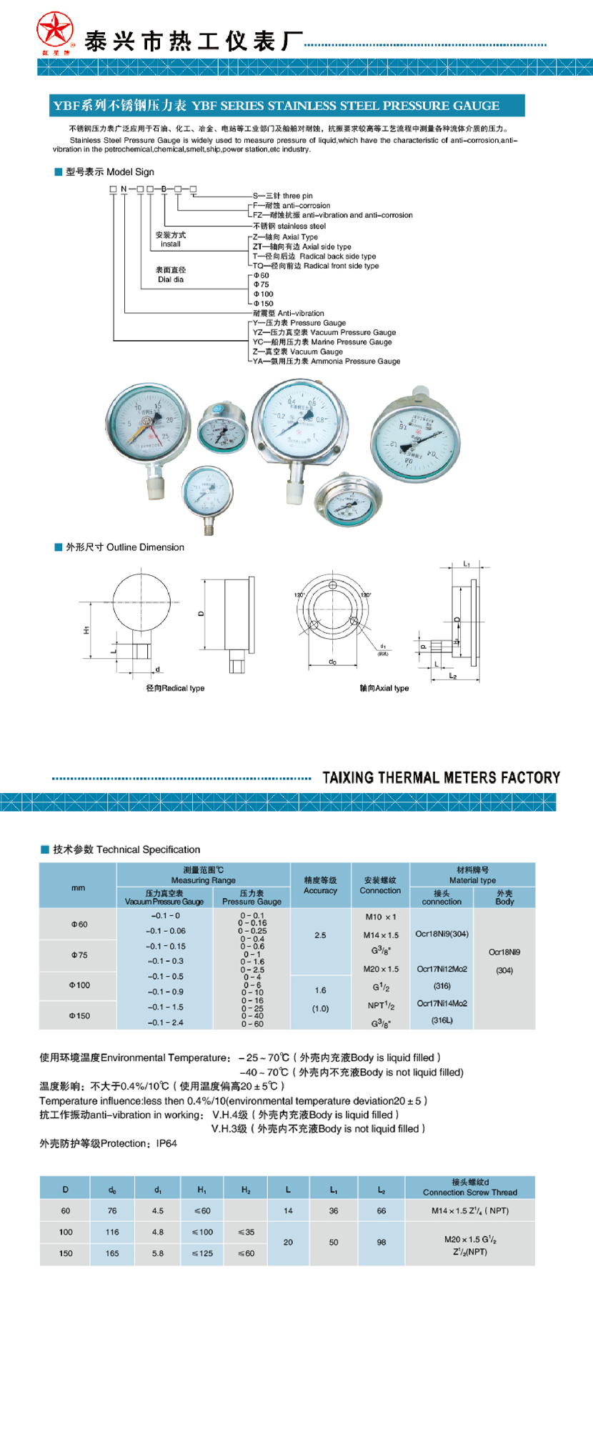 | 測(cè)量范圍: | 0~1000kPA | 精度等級(jí): | 2.5/1.6(1.0) |