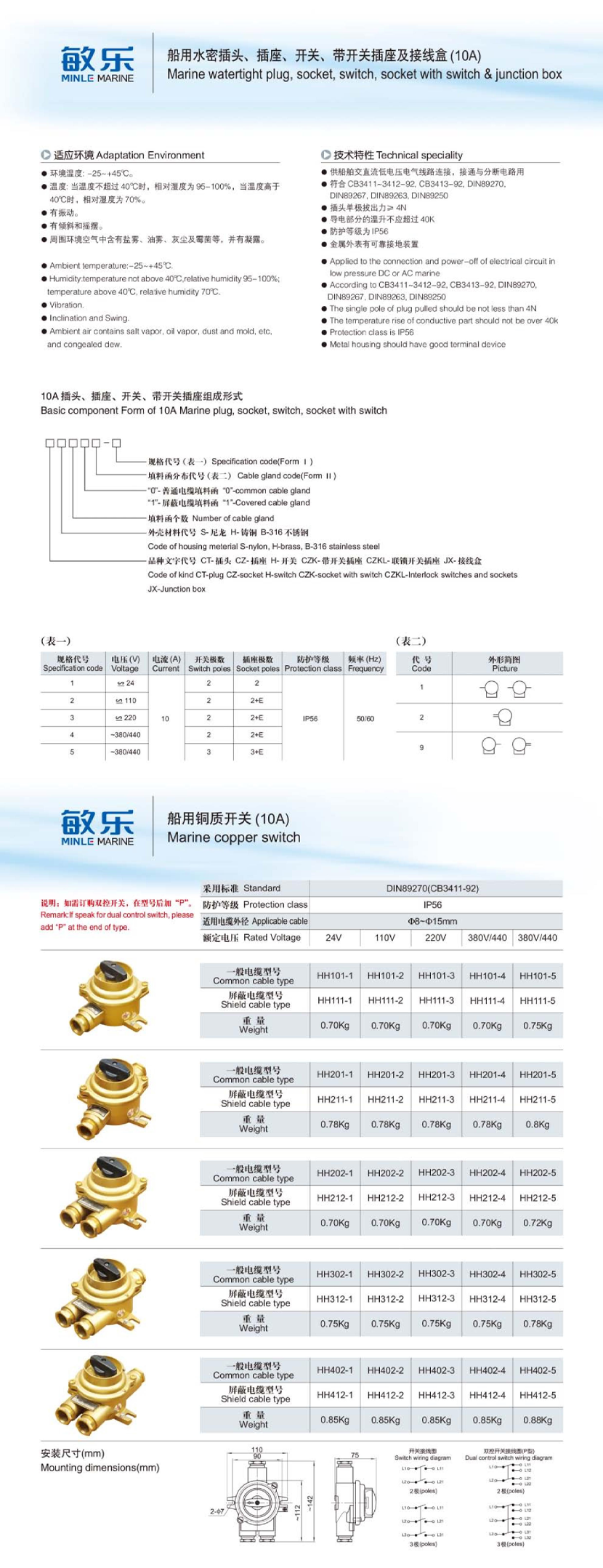 船用銅質(zhì)開(kāi)關(guān)(10A) | |||