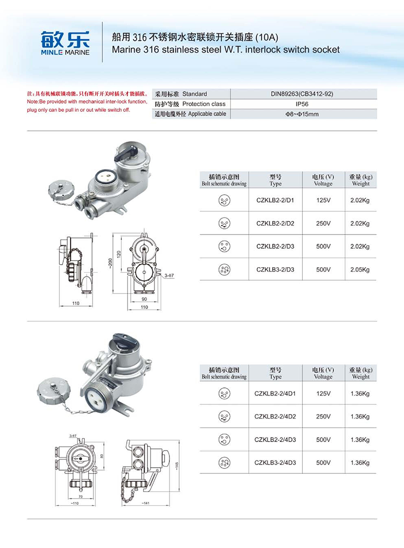 船用316不銹鋼水密聯鎖開關插座(10A) | |||