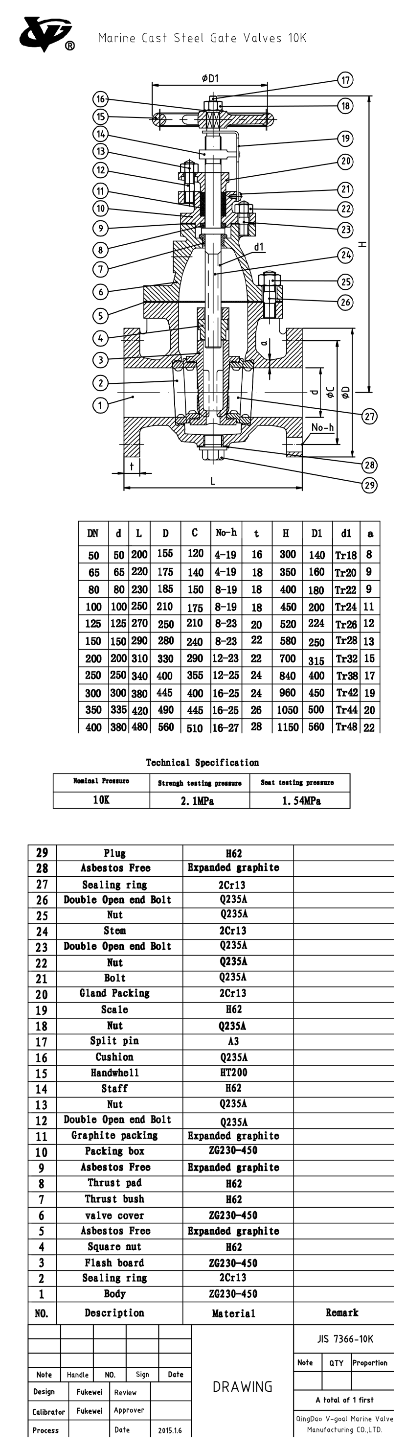 | 殼體測試壓力: | 2.1MPa | 密封測試壓力: | 1.54MPa |