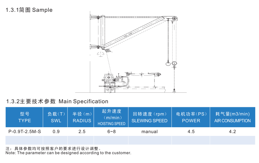 起升速度: | 6~8m/min | 回轉速度: | manual |