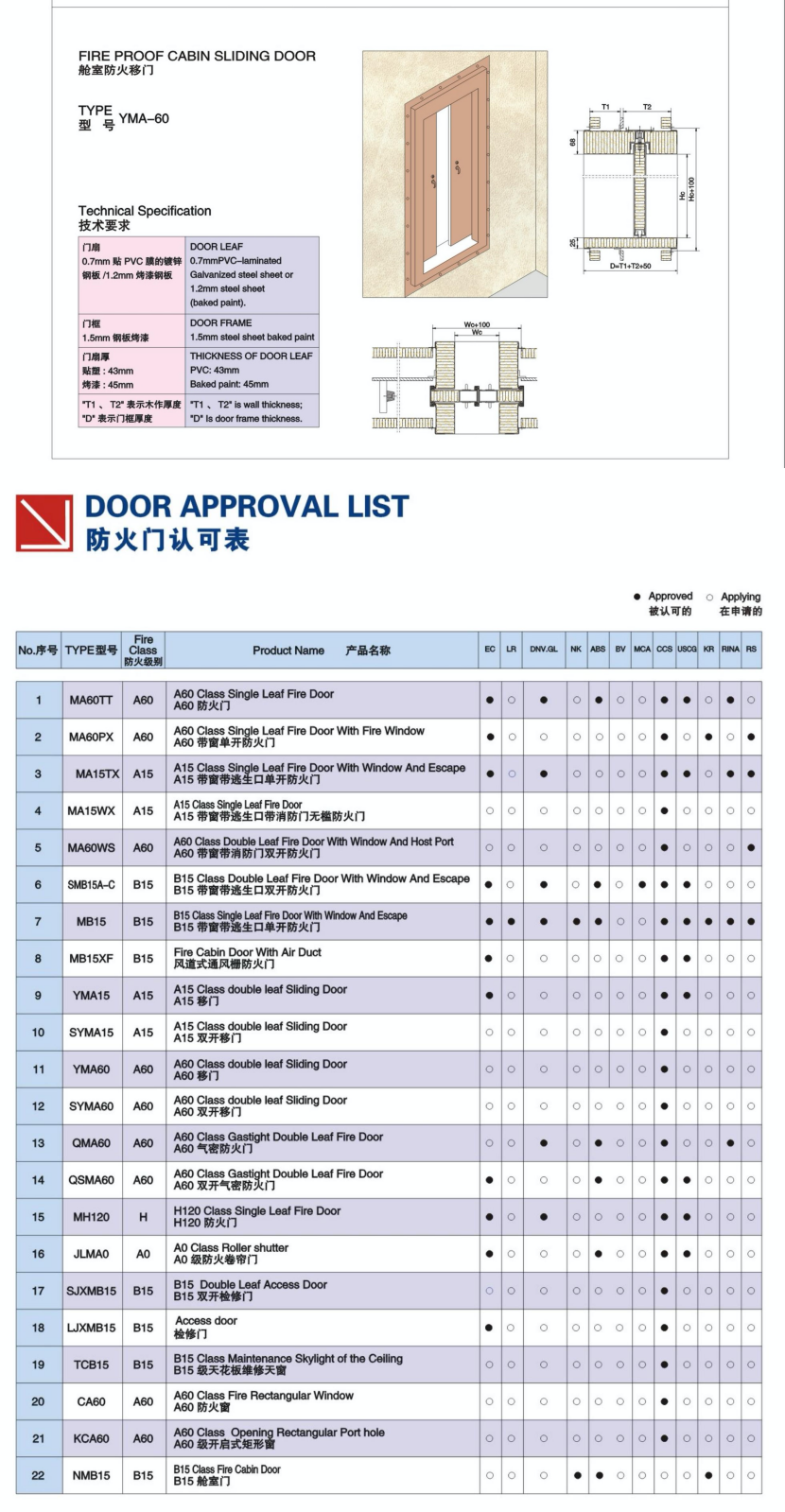 艙室門系統(tǒng)箱型框艙室防火門 | |||