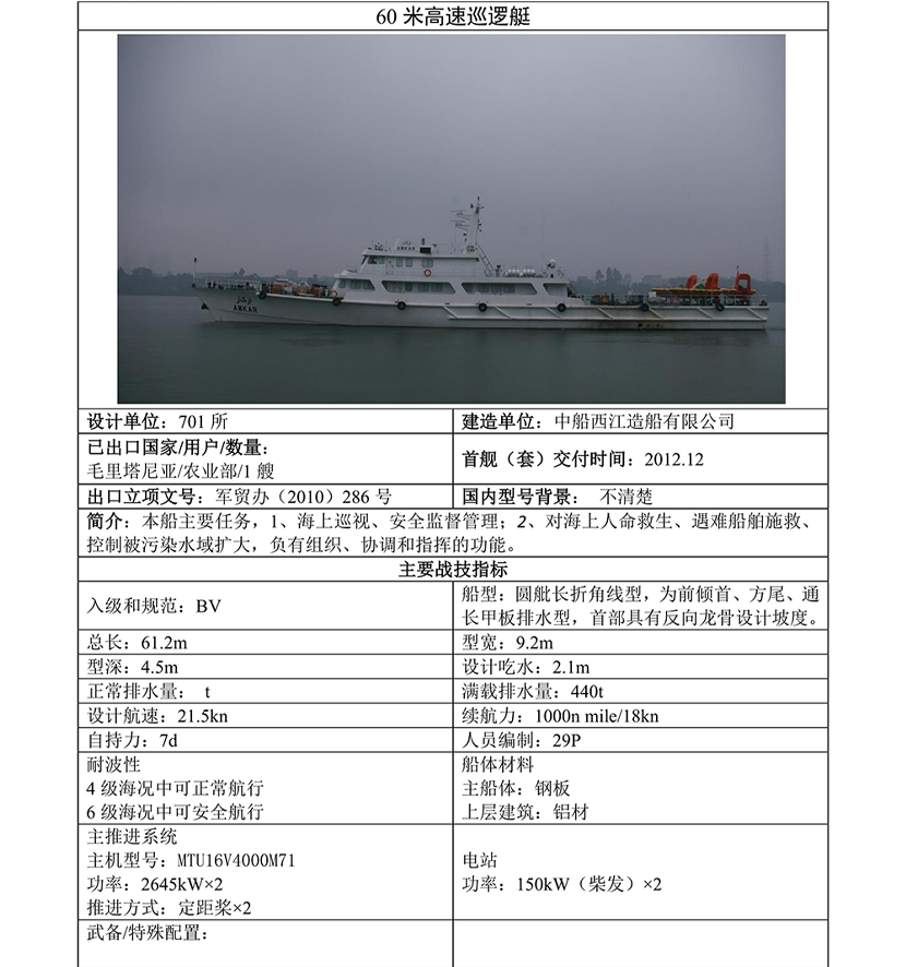 排水量: | 440t(滿載) | 發(fā)動機(jī)品牌: | MTU16V4000M71 |