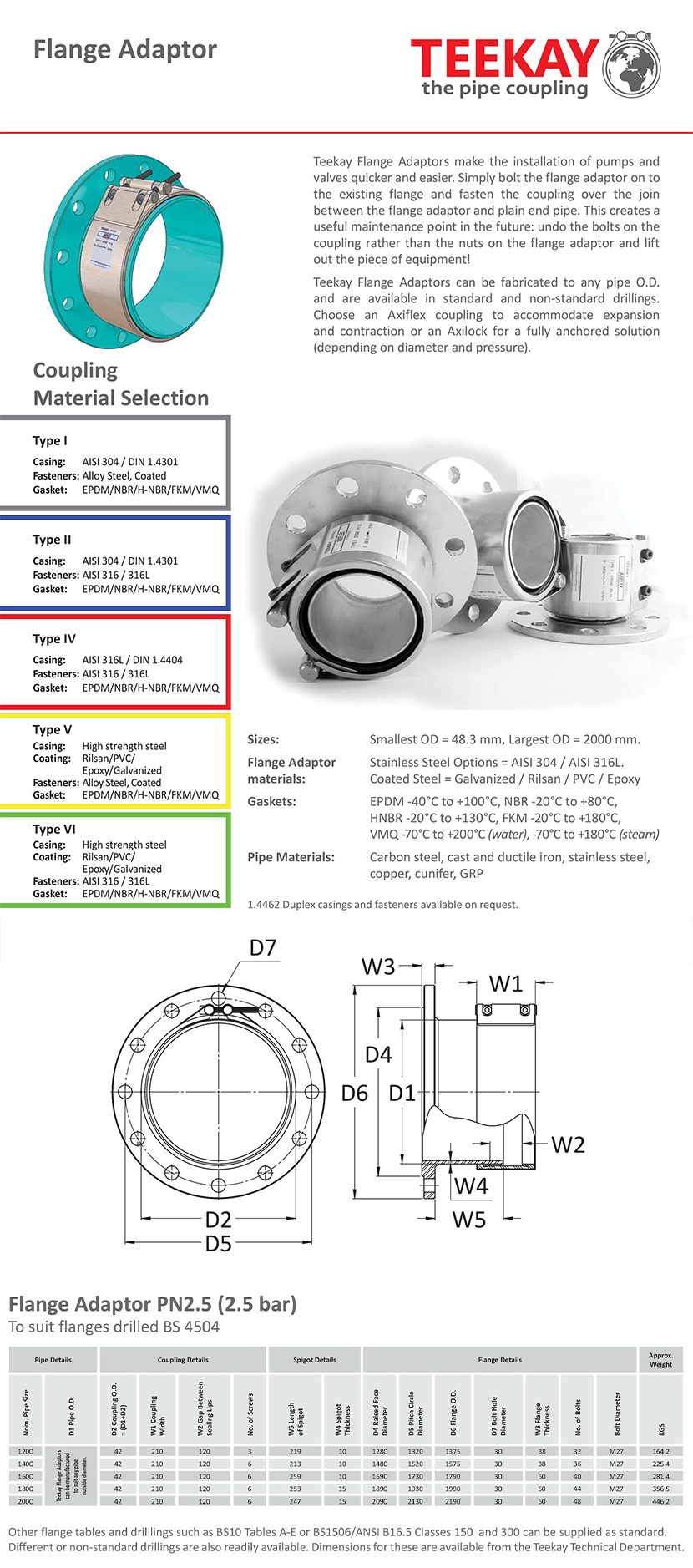 性能亮點: | 連接泵閥快速便捷;維修方便,無須拆卸法蘭即可取下維修部件;與各標準法蘭及不同管徑之間適配性高 | 適用管道材質: | Carbon steel, cast and ductile iron, stainless steel, copper, cunifer, GRP |
