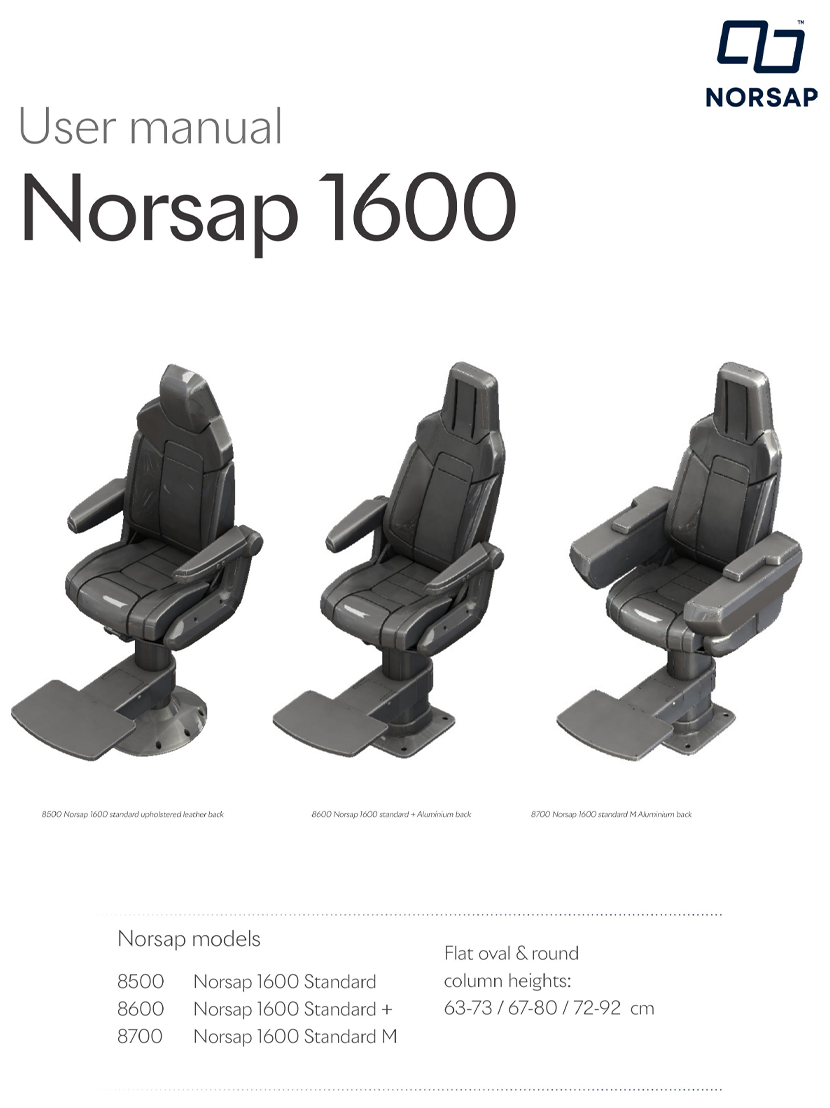 | 扶手加裝附件: | 支持 | 更多亮點: | The Norsap 1600 Standard is a robust and comfortable range – perfectly suited for demanding environments, compact in size and easy to install. |